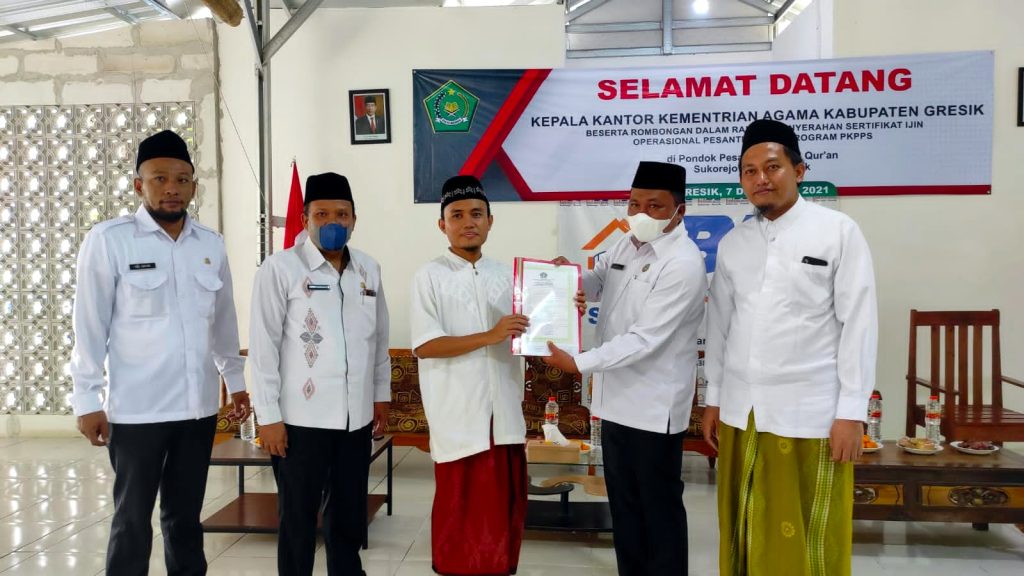 Alhamdulillah, kunjungan kepala kantor kementerian agama Kabupaten Gresik dalam prosesi penyerahan piagam izin operasional pesantren dan pendidikan kesetaraan pondok pesantren salafiyah tingkat ula di Baitul Qur’an Sukorejo. Sekolah di Baitul Qur’an resmi, lulus mendapat ijazah, satu pintu, dan diakui.